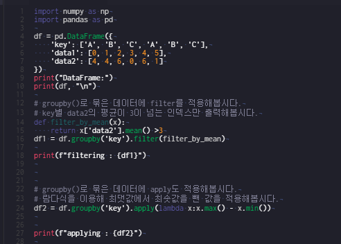 groupby로 묶은 후에도 apply 적용이 가능하다.
