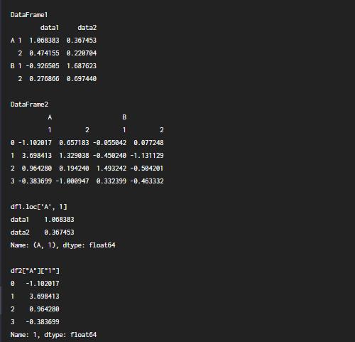 print(df1.loc['A', 1], "\n")