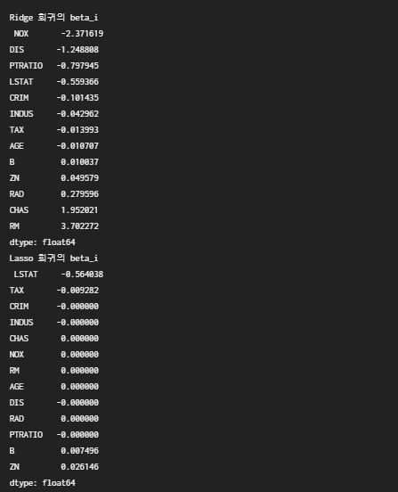print("Lasso 회귀의 beta_i\n", lasso_coef)