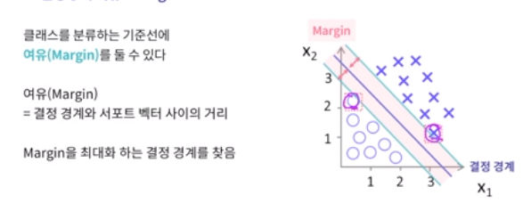 Hard Margin, Soft Margin 마진 안에 어느 정도 데이터가 들어갈 수도 있음.
