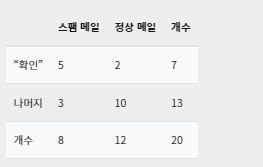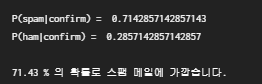 # 1. P(“스팸 메일”) 의 확률을 구하세요.
