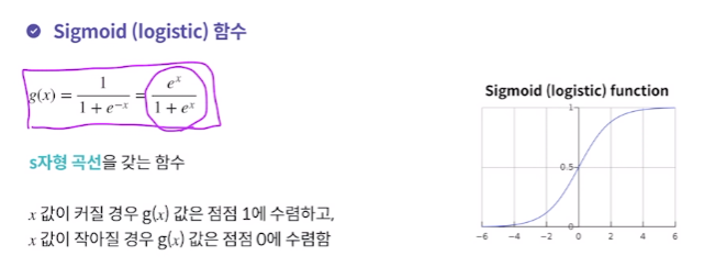 -> 해당 클래스에 속할 확룔인 0 또는 1 사이의 값만 내보낼 수 있도록 선형 회귀 알고리즘을 수정한다.
