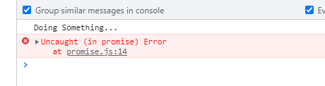 현재 promise.then()으로 성공적인 경우만 써줬기 때문에 Uncaught라고 뜬다.