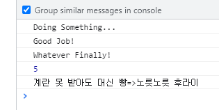 만약 중간에 달걀 가져오는 부분에서 reject로 에러가 나도, 마지막에 catch를 해주면 작업들이 연결되어 catch에서 에러를 띄울 수 있다.
