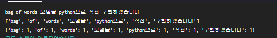 sentence = "Bag-of-Words 모델을 Python으로 직접 구현하겠습니다."