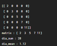 print_answer(matrix=matrix, dia_sum=dia_sum, dia_mean=dia_mean)