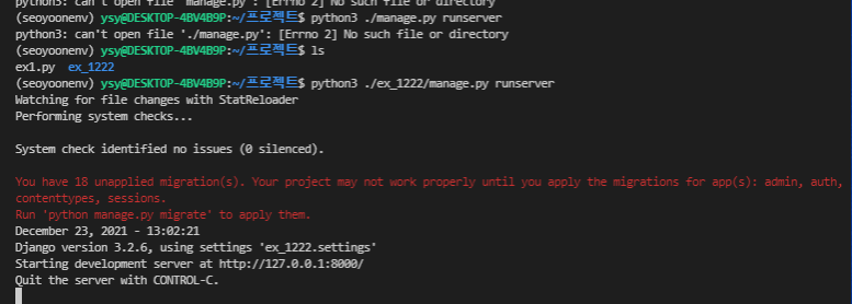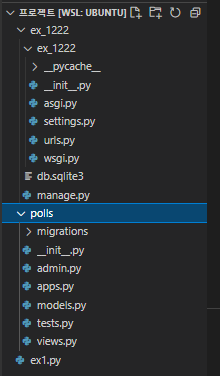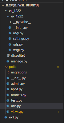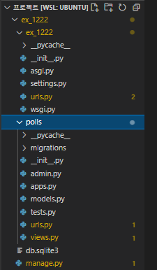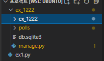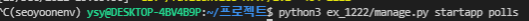 $ python3 ex_1222/manage.py runserver 를 하니까 No module 'polls' 가 떴다..