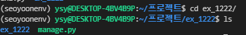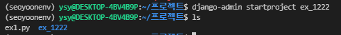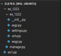 이렇게 manage.py보다 한단계 아래에 즉, ex_1222 안에 넣으라는 말인 것 같다.