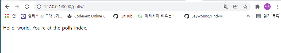 여기까지 했다면, index 뷰가 URLconf에 연결되었다.