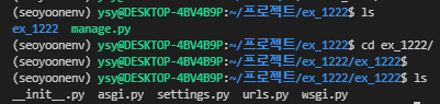 그럼 이제 본격적으로 설문조사 app을 생성하기 위해 manage.py가 존재하는 디렉토리에서 이렇게 친다.