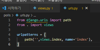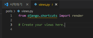 polls/views.py를 열어서 파이썬 코드를 입력한다.