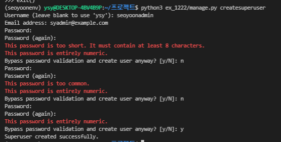 이게 관리자 계정이다 관리자 이름은 seoyoonadmin이고 이메일은 예시로 syadmin@example.com이라고 했다