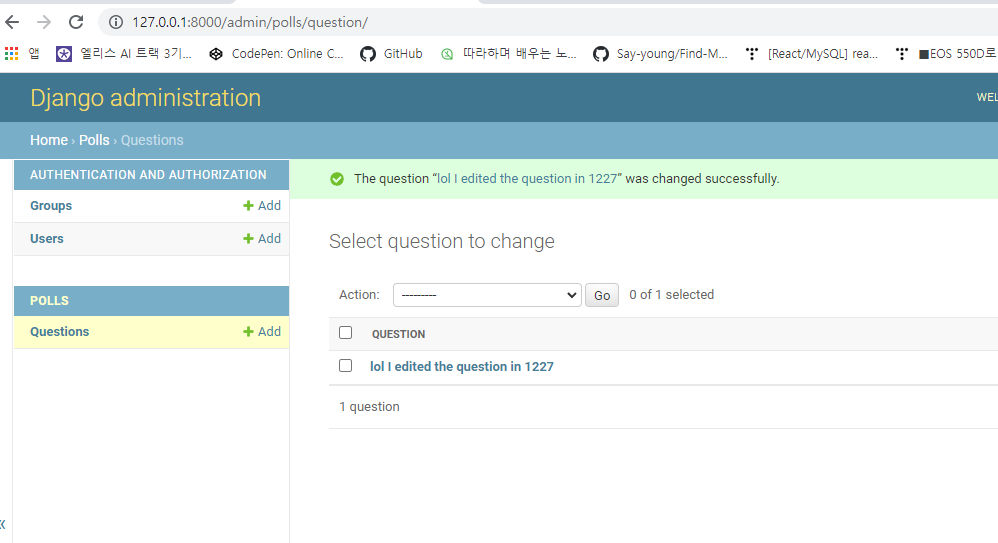 그럼 관리사이트에서 poll app이 구동되도록 admin.py를 변경한다!