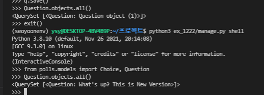 쿼리셋에 Question 객체를 생성하고 수정하고 저장하고.. 하는 것 같음