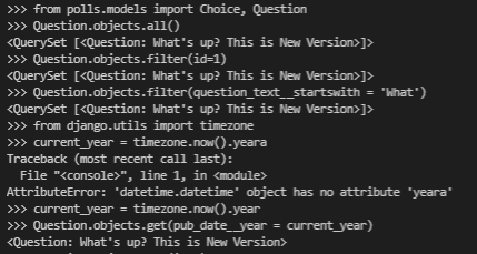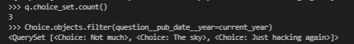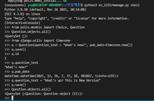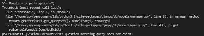 - Question과 Choice 객체에 접근하기 위한 파이썬 데이터베이스 접근 API를 생성함