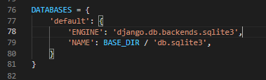 'NAME'은 데이터베이스의 이름이다. 만약 SQLite를 쓴다면 데이터베이스는 내 컴퓨터에 있는 파일이 된다. 그렇게 된다면 NAME은 반드시 전체 절대 경로로 지어야 한다. default는 BASE_DIR/'db.sqlite3' 이다. 한번 seoyoondb.sqlite3으로 바꿔보자