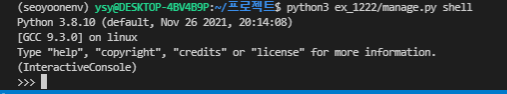 그럼 이제 python 쉘에서 장고 API를 가지고 놀아보자
