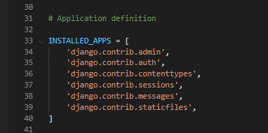 그리고 INSTALLED_APPS는 현재 장고 인스턴스에서 활성화된 모든 장고 앱들의 이름이 들어있다. 앱들은 다수 프로젝트에서 사용될 수 있고, 다른 프로젝트에서 쉽게 사용될 수 있도록 패키징하여 배포할 수 있다.