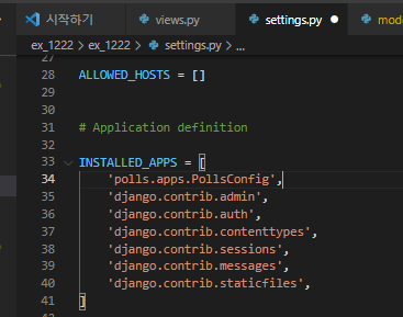 먼저 현재 프로젝트에게 polls앱이 설치되어있다는 것을 알려야 한다.