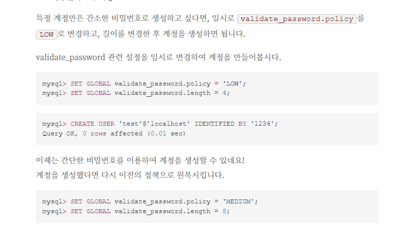 + MySQL 계정 설정 링크 깨질까봐 스샷 첨부하였다.