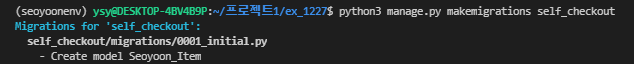 1. app 생성 $ python manage.py startapp self_checkout 2. settings 수정 애플리케이션 생성 후 장고한테 새로 만든 app을 사용할거라고 알려줘야한다. 해당 역할을 하는 파일 : mysite/settings.py settings.p..