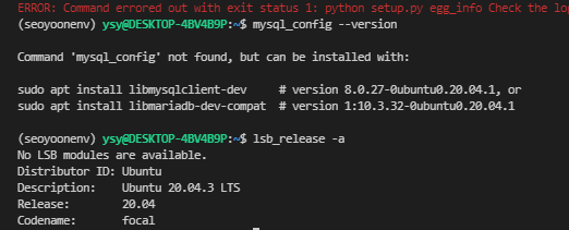 일단 우분투 버전 확인과 mysql_config not found래서 한번 확인해봄