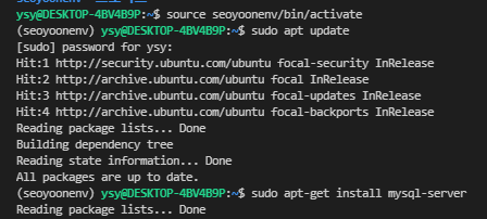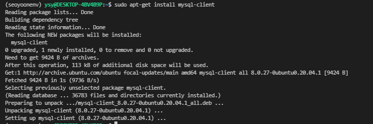 + 결국 안되서 sudo apt-get install mysql-client로 설치함