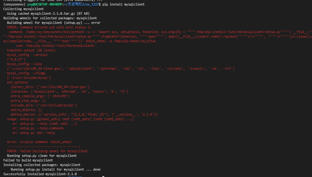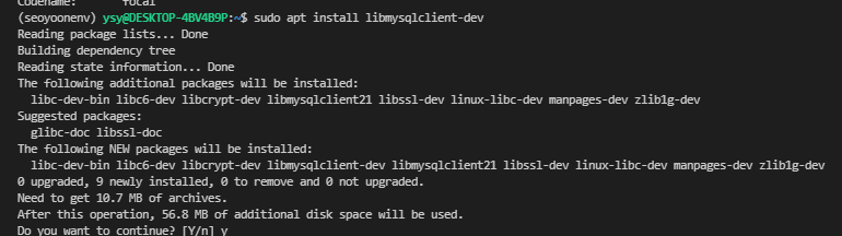 sudo apt install libmysqlclient-dev를 깔아봄