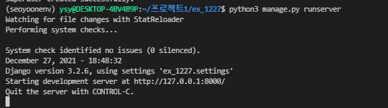 | 21.12.25 Django 튜토리얼 Part2 첫번째 장고 앱 작성하기 (0) | 2021.12.27 |