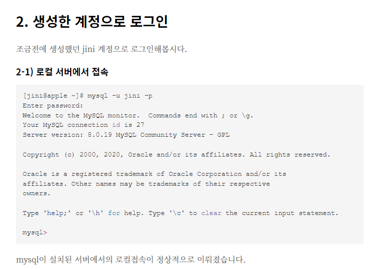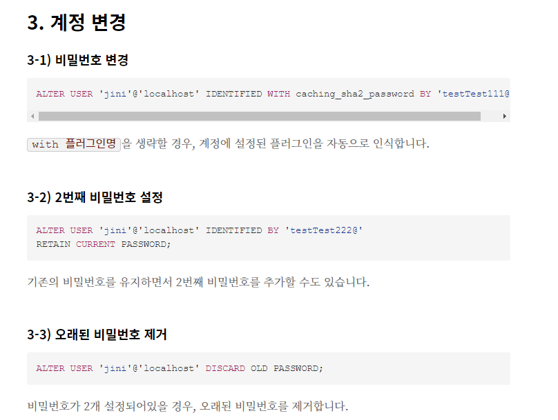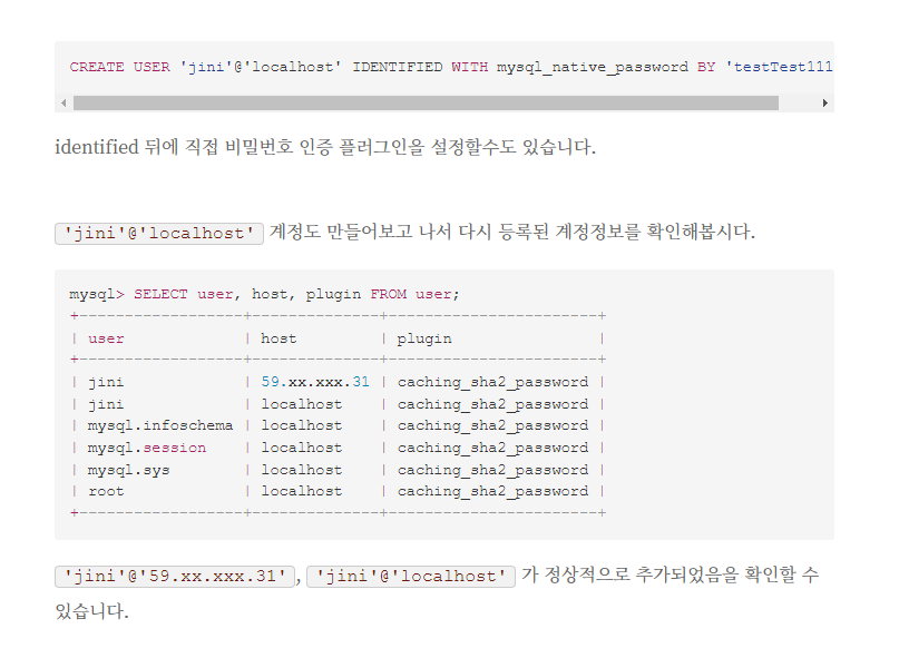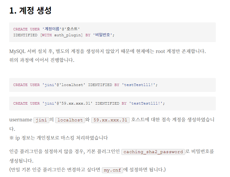 + MySQL 계정 설정 링크 깨질까봐 스샷 첨부하였다.