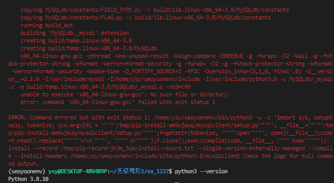 sudo apt-get install python3-dev default-libmysqlclient-dev build-essential