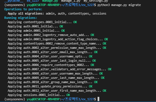 + db 내용 바뀔때마다 터미넬에서 migrate 해야함