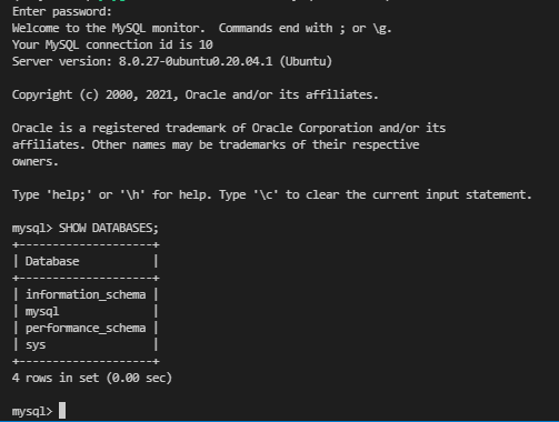 sudo mysql -u root -p