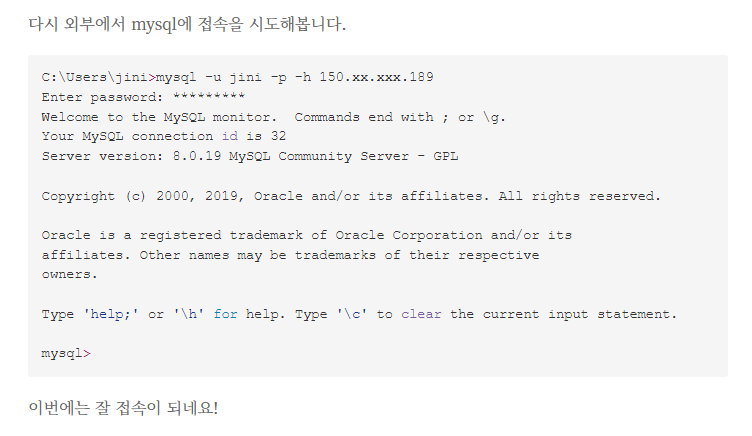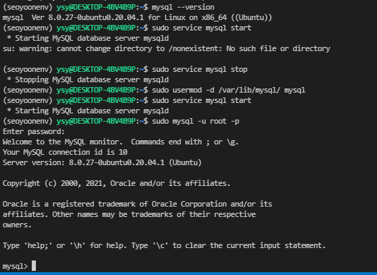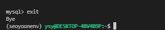 mysql> 이 보인다면 mysql에 들어온 것이 성공한 것이다.