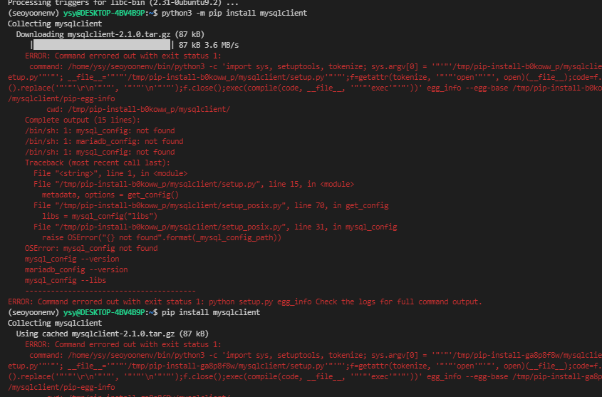 pip install mysqlclient하려는데 안 깔림..