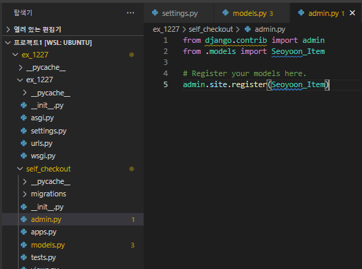 이 중에서 Seoyoon_Item이 admin 페이지에서 관리되었으면 하는 DB라면?
