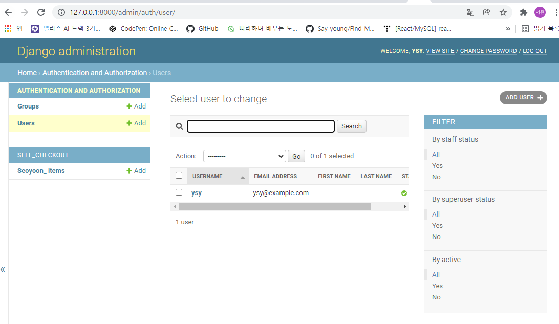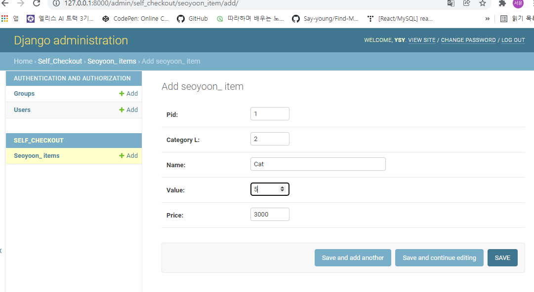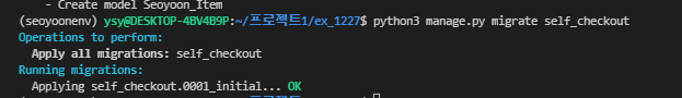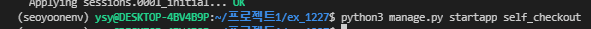 1. app 생성 $ python manage.py startapp self_checkout 2. settings 수정 애플리케이션 생성 후 장고한테 새로 만든 app을 사용할거라고 알려줘야한다. 해당 역할을 하는 파일 : mysite/settings.py settings.p..