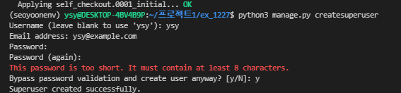 python3 manage.py createsuperuser