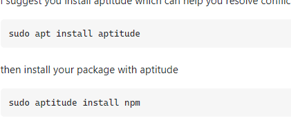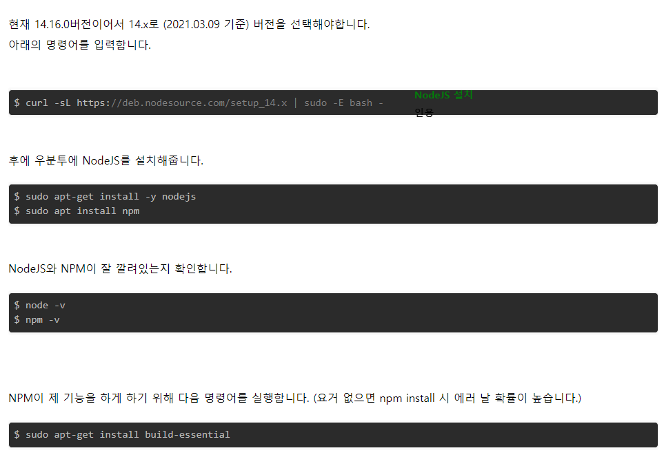 sudo apt install npm에서 막혀서 아래 명령어 실행