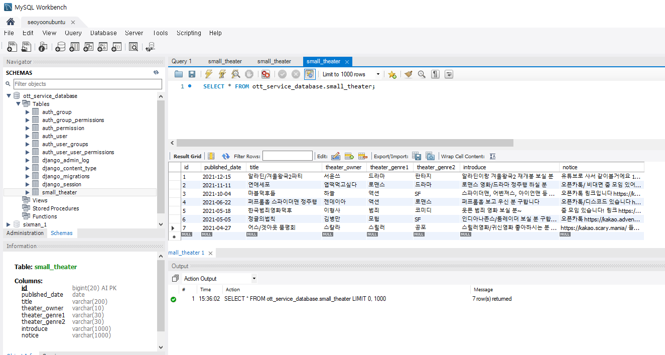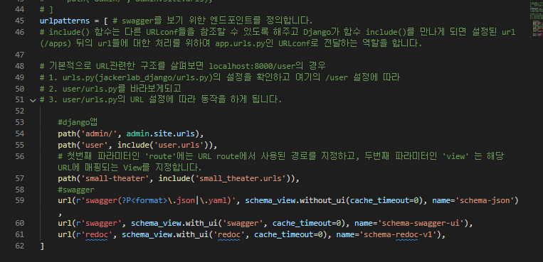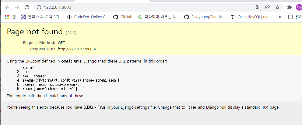 (small-theater2 로 들어가게 구현할 수도 있음 그러려면 small_theeater/urls.py에서 /뺴면 됨)
