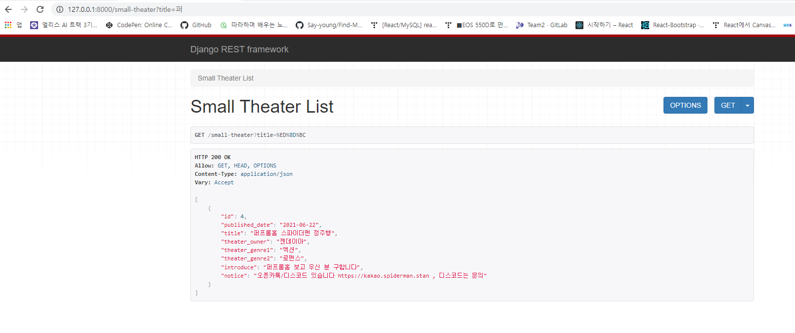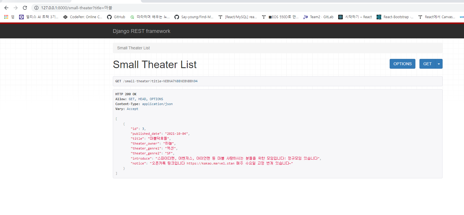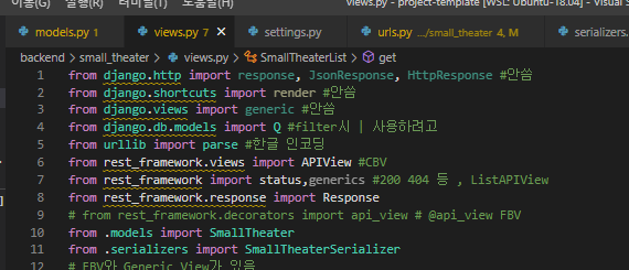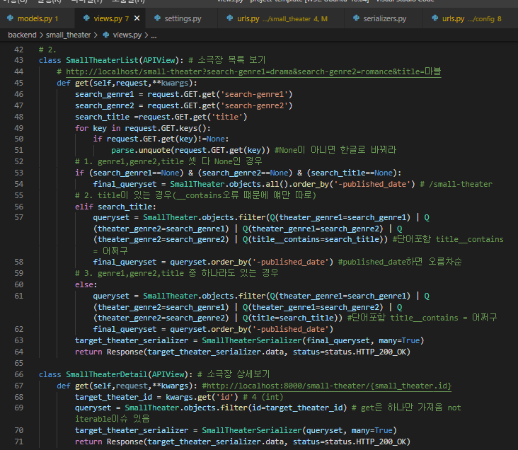 queryset = SmallTheater.objects.filter(id=target_theater_id) # get은 하나만 가져옴 not iterable이슈 있음
