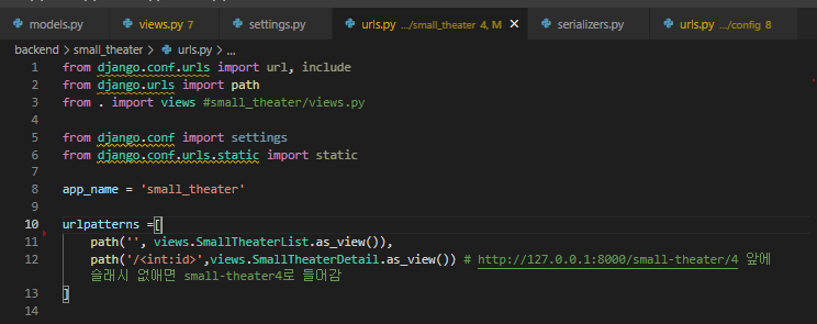 path('/<int:id>',views.SmallTheaterDetail.as_view()) # http://127.0.0.1:8000/small-theater/4 앞에 슬래시 없애면 small-theater4로 들어감