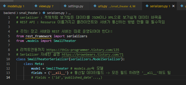 # Serializer 자세한 설명 https://brownbears.tistory.com/71