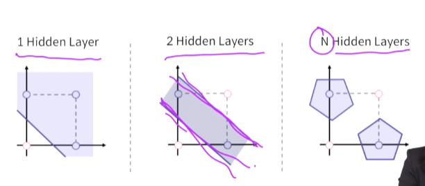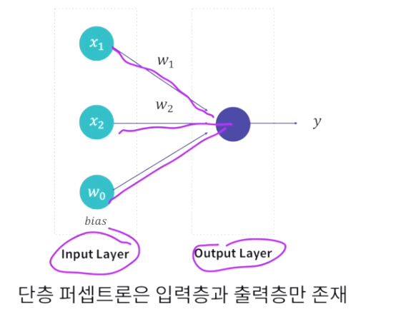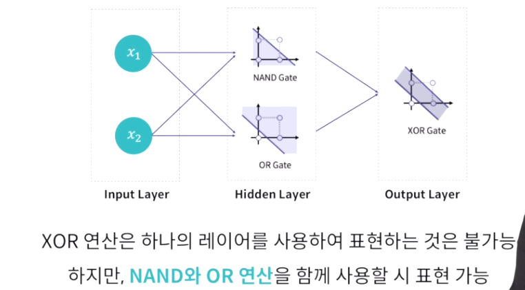 XOR를 빼고 나머지 게이트들은 single layer perceptron(선형분류기)로 분류할 수 있다.