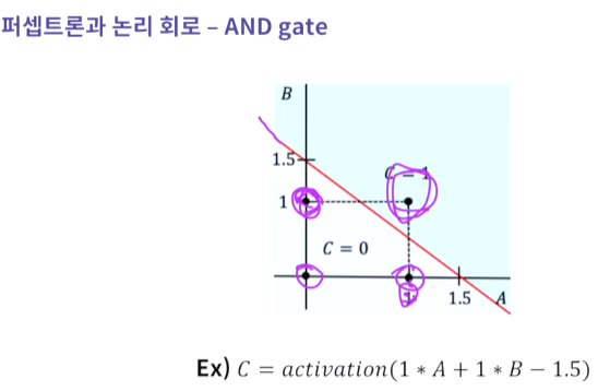 퍼셉트론 선형 분류기 AND, OR, NOR, XOR 등 논리게이트들이 있다.