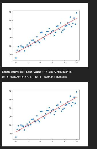 # 선형 모델의 가중치와 Bias를 업데이트합니다.