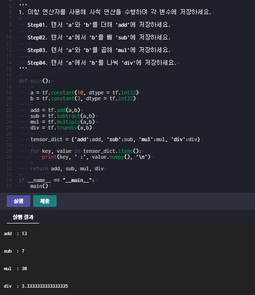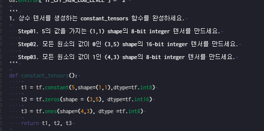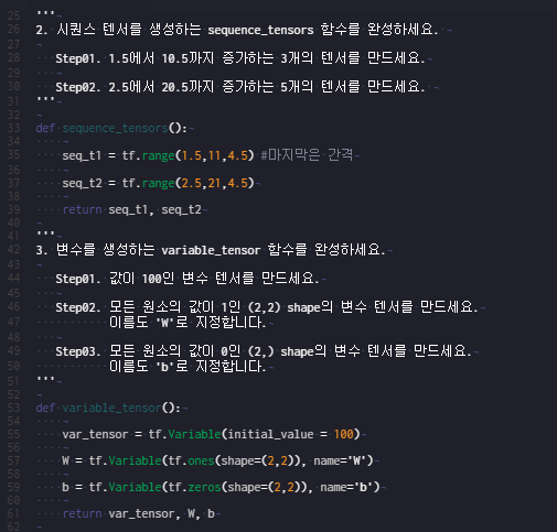 텐서 데이터 생성(numpy와 비슷하게 상수,시퀀스,난수,변수 등을 텐서형으로 생성하는 연산..)